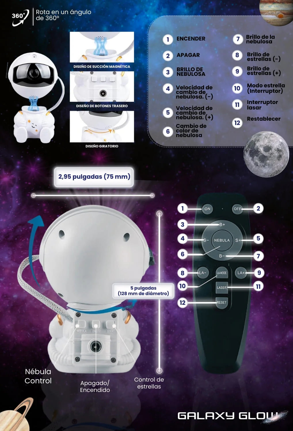 📦 Incluye: Proyector astronauta, control remoto y cable USB.