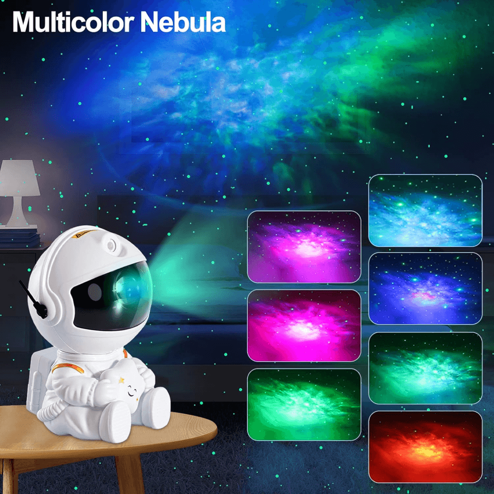 Transforma cualquier espacio con proyecciones de 7 galaxias en colores vibrantes. Su diseño de astronauta con rotación 360° crea un ambiente relajante y futurista.